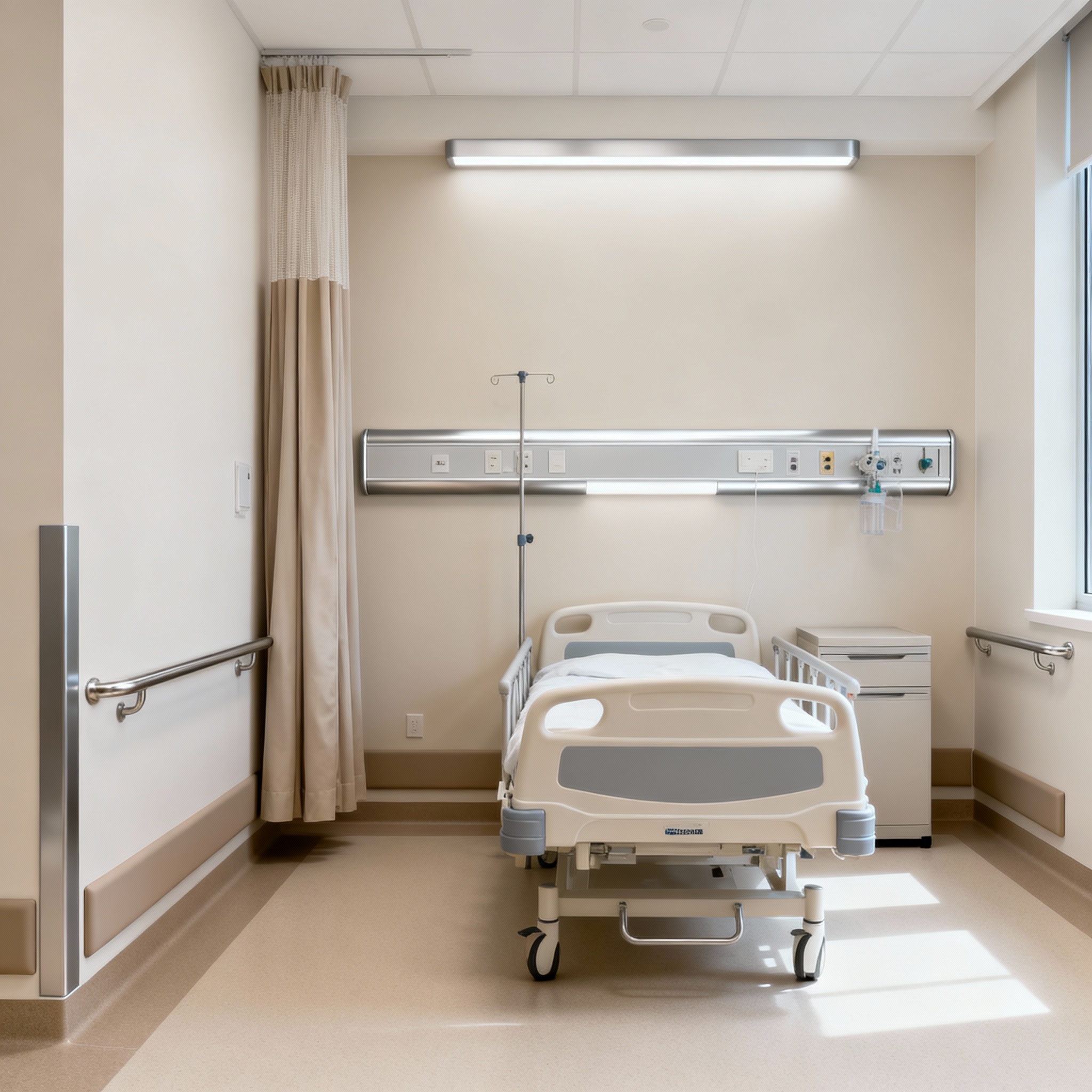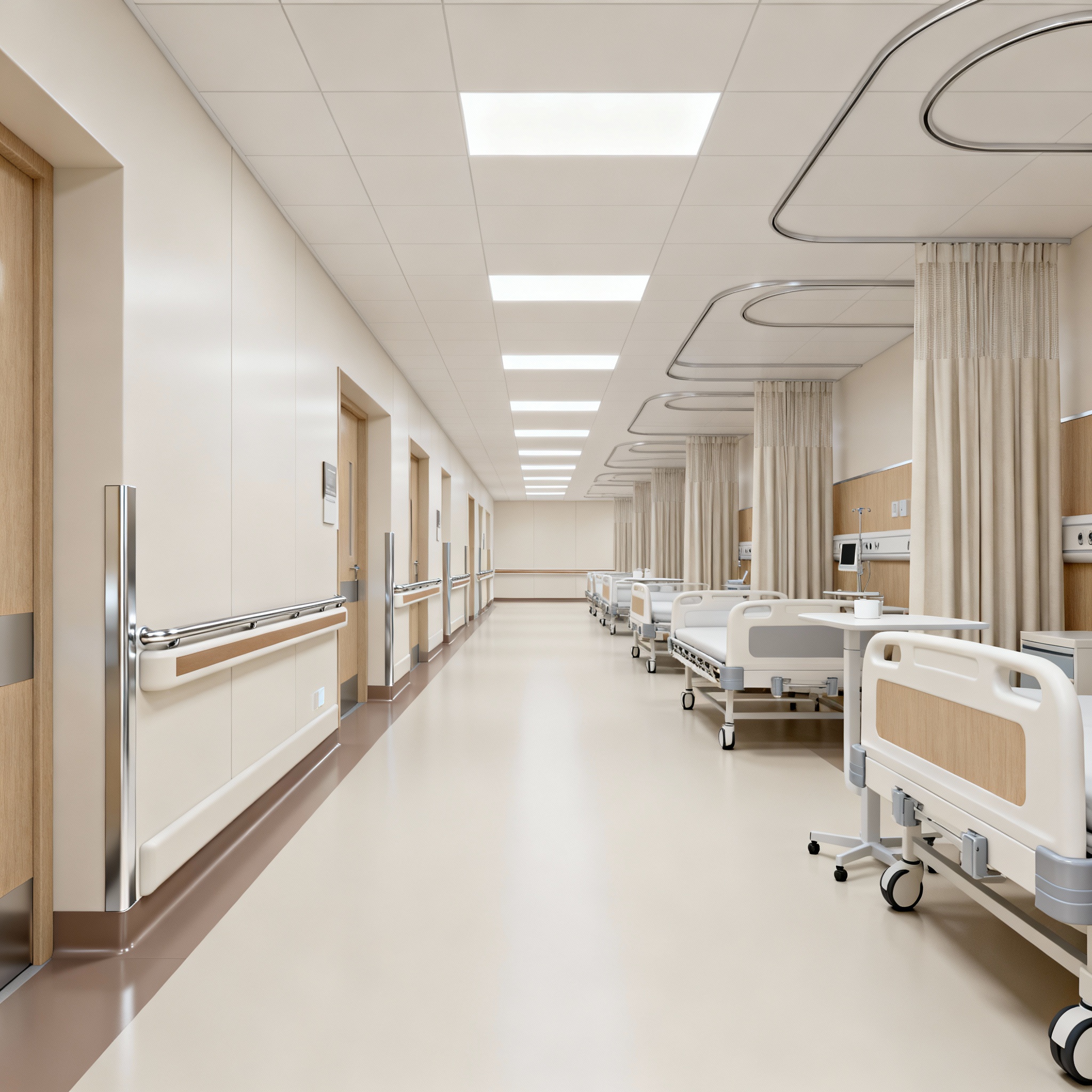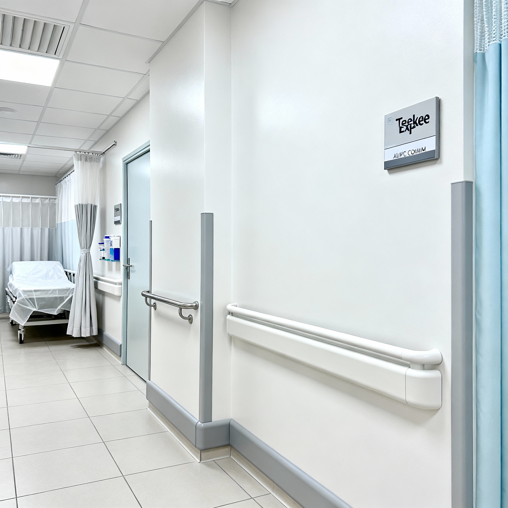 Aluminium with PVC Handrails, Wall Guards, Corner Guards, Bed Head Panels, Aluminium Coving, Hospital FR Bed Curtains, and Clean Room Accessories.